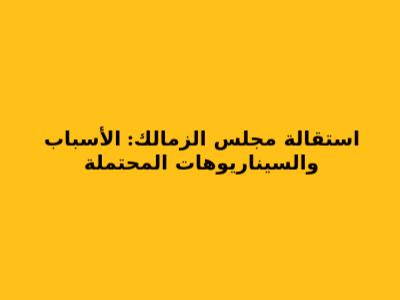 في حال استقالة مجلس إدارة نادي الزمالك، هناك عدة سيناريوهات محتملة يمكن أن تحدث، ولكل سيناريو تأثيره الخاص على مستقبل النادي. من المهم فهم هذه السيناريوهات لتقييم الوضع بشكل كامل واتخاذ القرارات المناسبة. السيناريوهات الرئيسية تشمل: