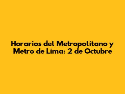 Meta: Consulta los horarios de Metropolitano, Corredores y Metro de Lima para el 2 de octubre en Perú. Planifica tu viaje y evita contratiempos.