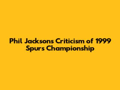 Phil Jackson's Criticism Of 1999 Spurs Championship