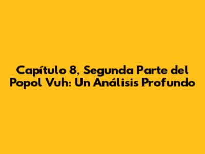 La narrativa del Popol Vuh se divide en varias partes principales, cada una con su propio enfoque y significado. Los relatos de la creación, las aventuras de los héroes gemelos y la historia del pueblo quiché se entrelazan para formar una narrativa coherente y multifacética. Cada personaje, cada evento y cada detalle simbólico contribuyen a la construcción de un universo mítico y real que sigue resonando en la actualidad. Para nosotros, estudiantes y entusiastas de la historia, el Popol Vuh ofrece una oportunidad única para explorar una cosmovisión diferente y para reflexionar sobre la diversidad de la experiencia humana. Al sumergirnos en sus páginas, podemos apreciar la sabiduría ancestral de los mayas y su capacidad para crear un mundo de palabras que trasciende el tiempo y el espacio. En este análisis profundo, desglosaremos el Capítulo 8, Segunda Parte, para entender mejor su lugar dentro de la estructura general del Popol Vuh y su relevancia histórica y cultural.