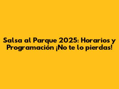 Salsa Al Parque 2025: Horarios Y Programación ¡No Te Lo Pierdas!