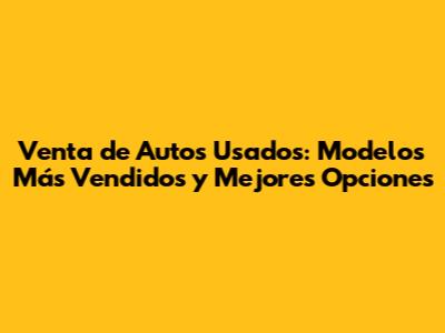 Meta: Descubre los modelos más vendidos en la venta de autos usados y cómo elegir la mejor opción para ti. Guía completa y consejos expertos.
